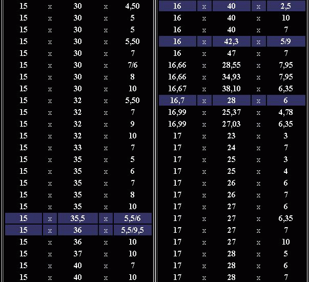 od 15 - 18 mm